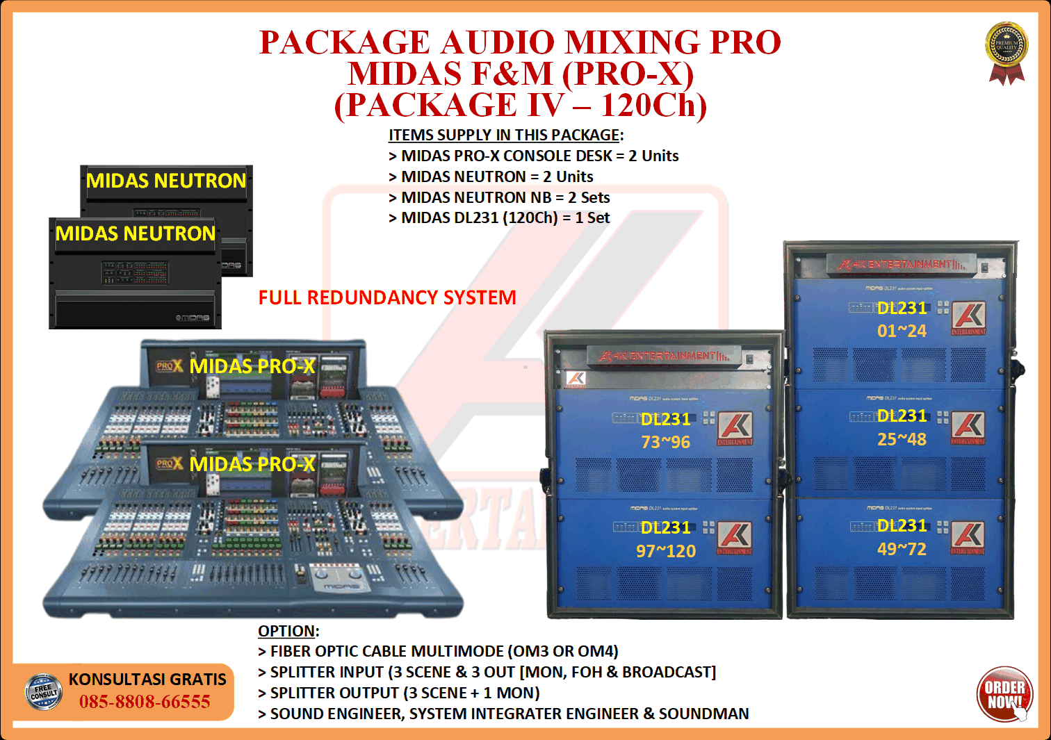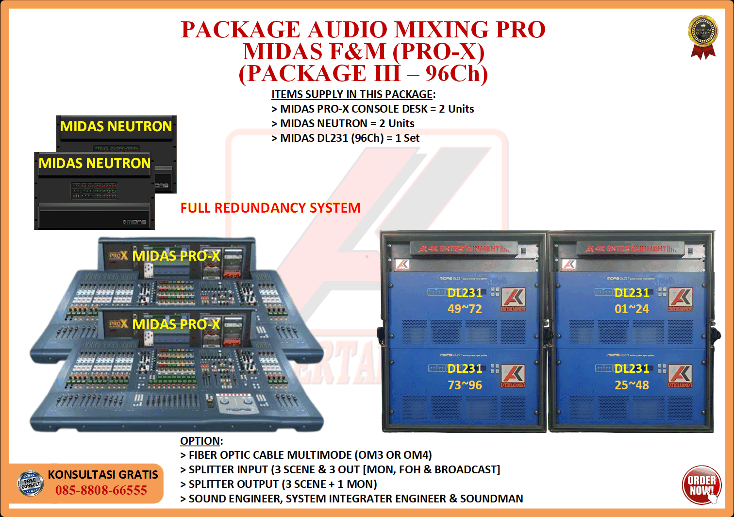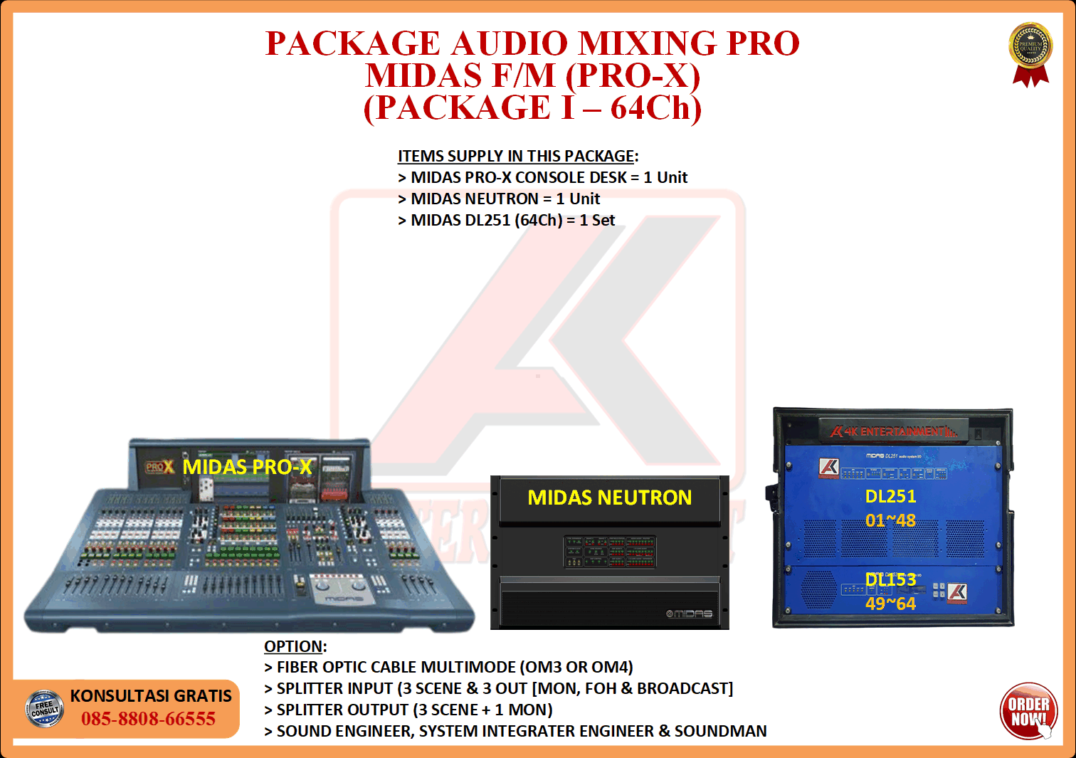 FREE CONSULTATION >> Via Email or WhatsApp SATISFACTION GUARANTEE >> Best Quality, Appearance, Design, Programming, Operator And Services. SERVICE >> Technical Support Available 24H/7D DELIVERY >> T&C To Be Apply HOME SPECIAL OFFER 4K ACADEMY RENTAL – 4K ENTERTAINMENT CUSTOM REQUEST AUDIO MIXING Accessories Digital I/O’s Rack Pkg YAMAHA Pkg MIDAS SOUND SYSTEM IN-EAR MONITOR MICROPHONE COMBINER & SPLITTER BACKLINE DMX-512 LIGHTING SPECIAL EFFECT MULTIMEDIA COMMUNICATION DISC JOCKEY EVENT SUPPORT PARTY EQUIPMENT SAFETY/PROTECTION RIGGING/STAGE PACKAGE DIGITAL MIXING CONSOLES - YAMAHA PKG CL3-I Rp POA /Hari PKG CL3-II Rp POA /Hari PKG CL3-III Rp POA /Hari PKG CL3-IV Rp POA /Hari PKG CL5-I Rp POA /Hari PKG CL5-II Rp POA /Hari PKG CL5-III Rp POA /Hari PKG CL5-IV Rp POA /Hari PKG CL5-V Rp POA /Hari PKG CL5-VI Rp POA /Hari PKG VVIP-A Rp POA /Hari PKG VVIP-B Rp POA /Hari PKG VVIP-C Rp POA /Hari PKG VVIP-D Rp POA /Hari PACKAGE DIGITAL MIXING CONSOLES - MIDAS F/M PRO2-I Rp POA /Hari F/M PRO2-II Rp POA /Hari F/M PRO2-III Rp POA /Hari F&M PRO2-I Rp POA /Hari F&M PRO2-II Rp POA /Hari F&M PRO2-III Rp POA /Hari F/M PROX-I Rp POA /Hari F/M PROX-II Rp POA /Hari F/M PROX-III Rp POA /Hari F&M PROX-I Rp POA /Hari F&M PROX-II Rp POA /Hari F&M PROX-III Rp POA /Hari F&M PROX-IV Rp POA /Hari F&M PROX-V Rp POA /Hari OPTION SCOPE OF WORK;> Installation and Setup System Network Fully Functional.> Configure System Of Audio Mixing> Line Check Digital Snake To/From Mixing Console Fully Functional. If 4K Provide Sub-Snake or Splitter, so Line Check will be included.> When System Fully Check and Ready, Team 4K will handover to CLIENT. If Operator & System Engineer from 4K, 4K will be Responsible for all scope of works. BACA CARA-CARA UNTUK MEMESAN SEWA READ HOW TO BOOK A RENTAL