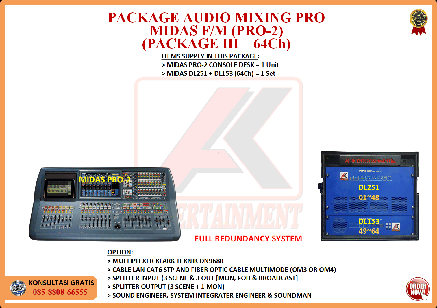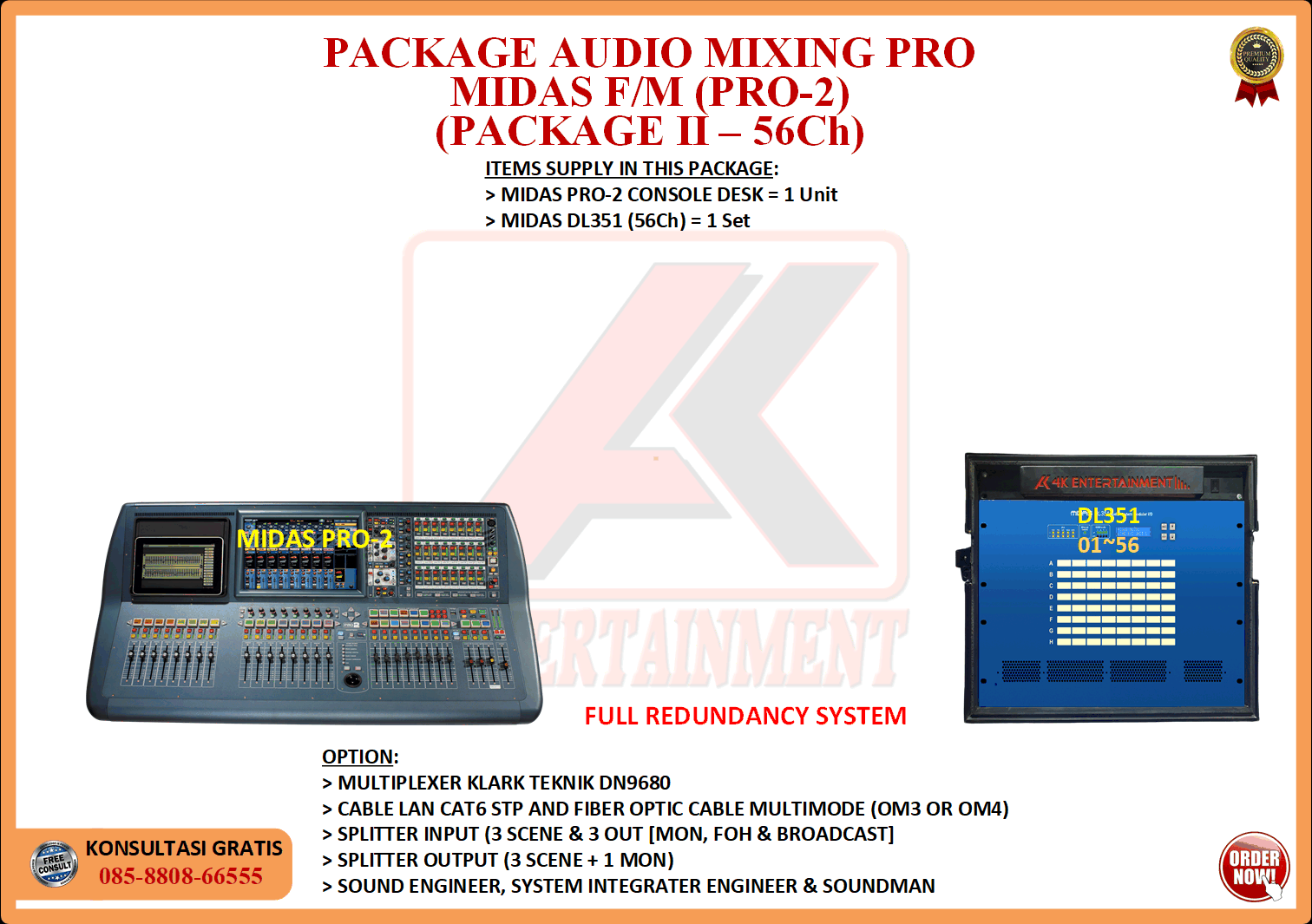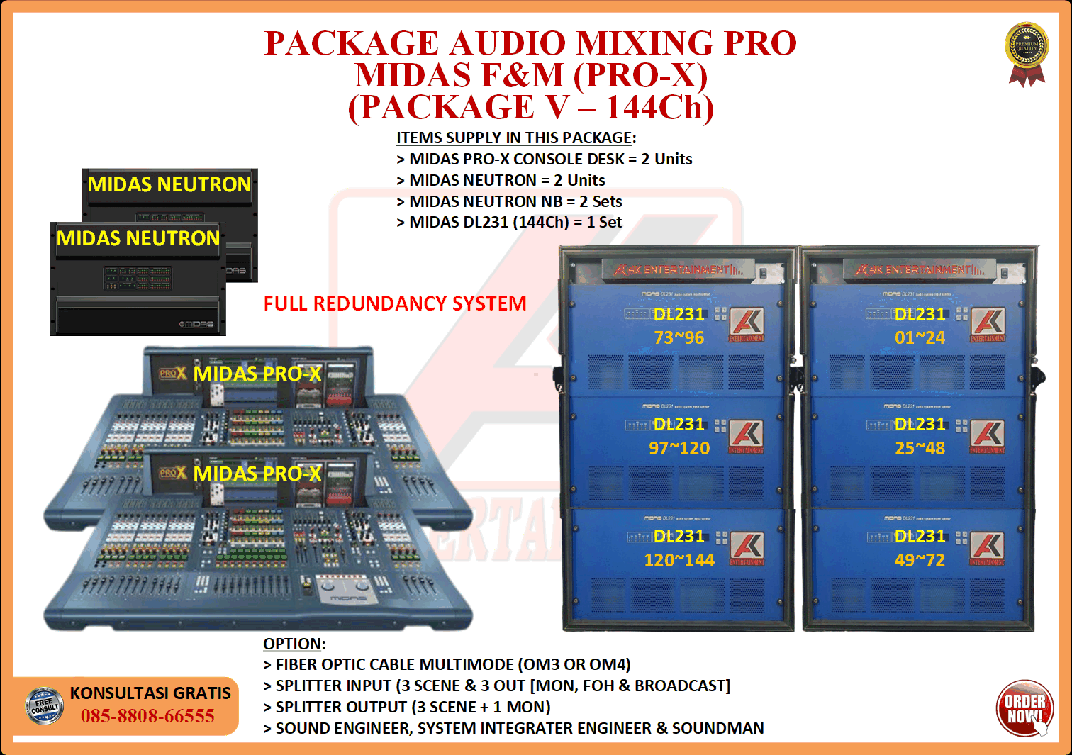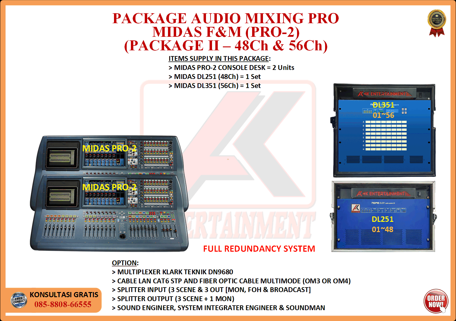 FREE CONSULTATION >> Via Email or WhatsApp SATISFACTION GUARANTEE >> Best Quality, Appearance, Design, Programming, Operator And Services. SERVICE >> Technical Support Available 24H/7D DELIVERY >> T&C To Be Apply HOME SPECIAL OFFER 4K ACADEMY RENTAL – 4K ENTERTAINMENT CUSTOM REQUEST AUDIO MIXING Accessories Digital I/O’s Rack Pkg YAMAHA Pkg MIDAS SOUND SYSTEM IN-EAR MONITOR MICROPHONE COMBINER & SPLITTER BACKLINE DMX-512 LIGHTING SPECIAL EFFECT MULTIMEDIA COMMUNICATION DISC JOCKEY EVENT SUPPORT PARTY EQUIPMENT SAFETY/PROTECTION RIGGING/STAGE PACKAGE DIGITAL MIXING CONSOLES - YAMAHA PKG CL3-I Rp POA /Hari PKG CL3-II Rp POA /Hari PKG CL3-III Rp POA /Hari PKG CL3-IV Rp POA /Hari PKG CL5-I Rp POA /Hari PKG CL5-II Rp POA /Hari PKG CL5-III Rp POA /Hari PKG CL5-IV Rp POA /Hari PKG CL5-V Rp POA /Hari PKG CL5-VI Rp POA /Hari PKG VVIP-A Rp POA /Hari PKG VVIP-B Rp POA /Hari PKG VVIP-C Rp POA /Hari PKG VVIP-D Rp POA /Hari PACKAGE DIGITAL MIXING CONSOLES - MIDAS F/M PRO2-I Rp POA /Hari F/M PRO2-II Rp POA /Hari F/M PRO2-III Rp POA /Hari F&M PRO2-I Rp POA /Hari F&M PRO2-II Rp POA /Hari F&M PRO2-III Rp POA /Hari F/M PROX-I Rp POA /Hari F/M PROX-II Rp POA /Hari F/M PROX-III Rp POA /Hari F&M PROX-I Rp POA /Hari F&M PROX-II Rp POA /Hari F&M PROX-III Rp POA /Hari F&M PROX-IV Rp POA /Hari F&M PROX-V Rp POA /Hari OPTION SCOPE OF WORK;> Installation and Setup System Network Fully Functional.> Configure System Of Audio Mixing> Line Check Digital Snake To/From Mixing Console Fully Functional. If 4K Provide Sub-Snake or Splitter, so Line Check will be included.> When System Fully Check and Ready, Team 4K will handover to CLIENT. If Operator & System Engineer from 4K, 4K will be Responsible for all scope of works. BACA CARA-CARA UNTUK MEMESAN SEWA READ HOW TO BOOK A RENTAL